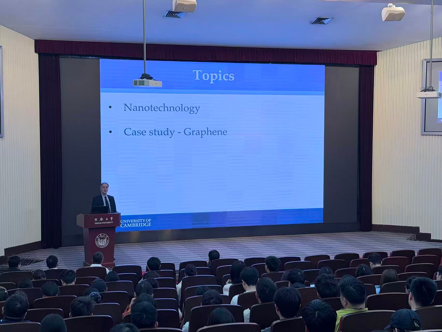 会谈后,科尔姆·杜尔坎教授参观了智慧校园辅助决策“驾驶舱”、卓越工程师学院及土木工程学院实验室。当晚,杜尔坎教授应邀为同济学生作讲座。讲座由同济大学校长助理、研究生院院长赵鸿铎教授主持,现场反响热烈。